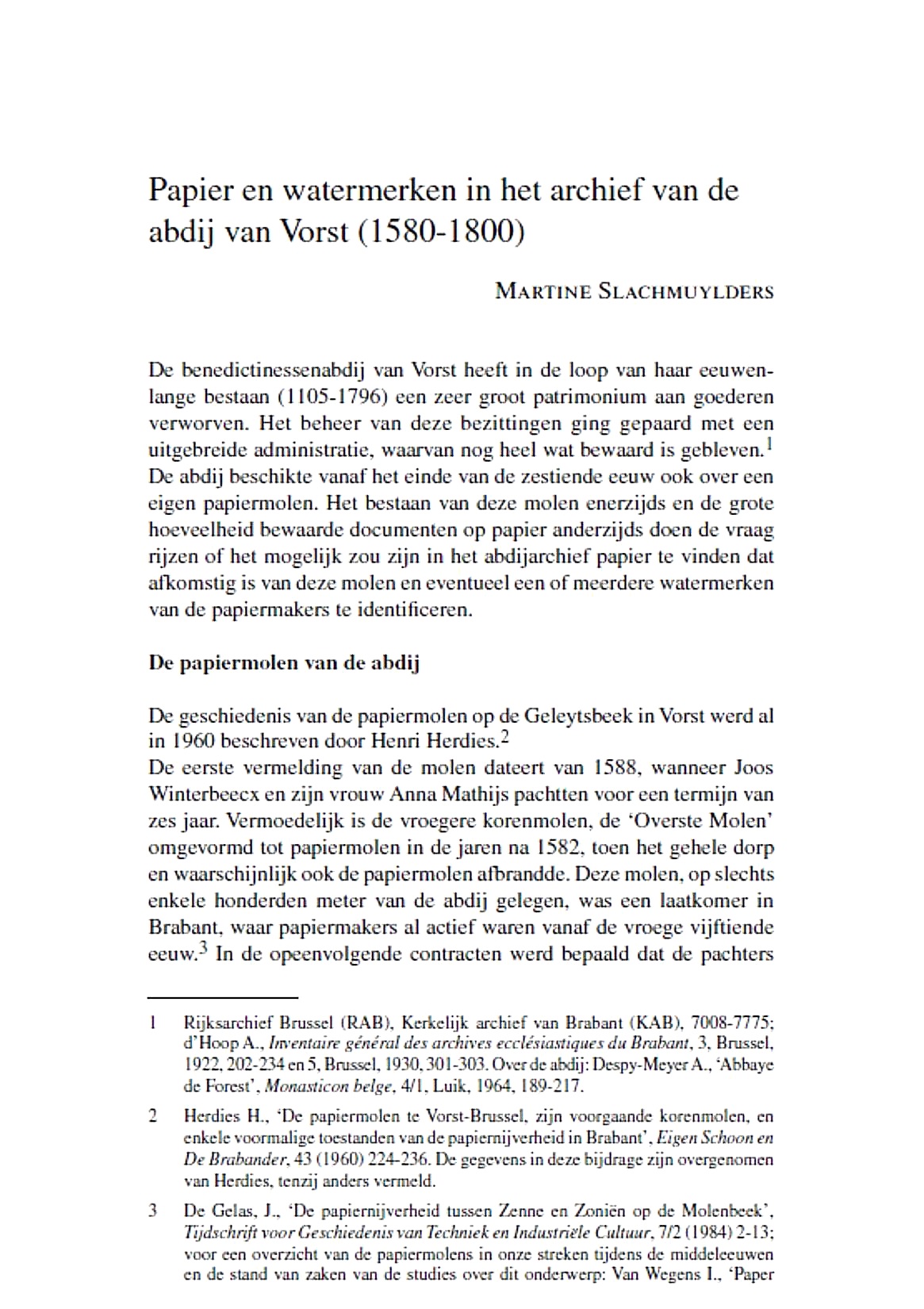 SLACHMUYLDERS M. | Papier en watermerken in het archief van de abdij van Vorst (1580-1800). | |